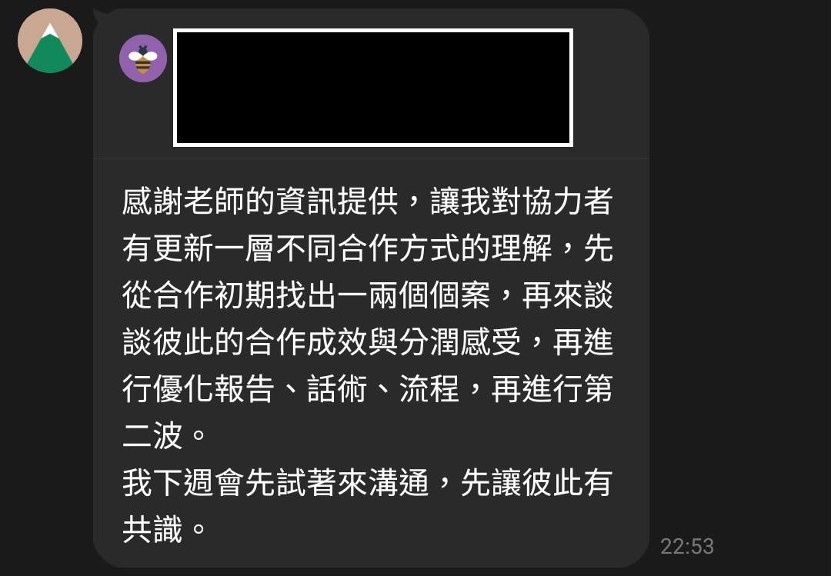 合作初期不必太講究,真的為彼此都帶來客戶之後,你再微調合作內容即可。