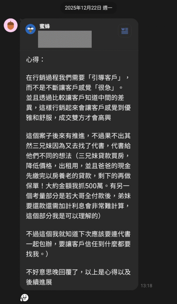 這種家族型案件,最忌諱的就是把自己放在推銷的位置。