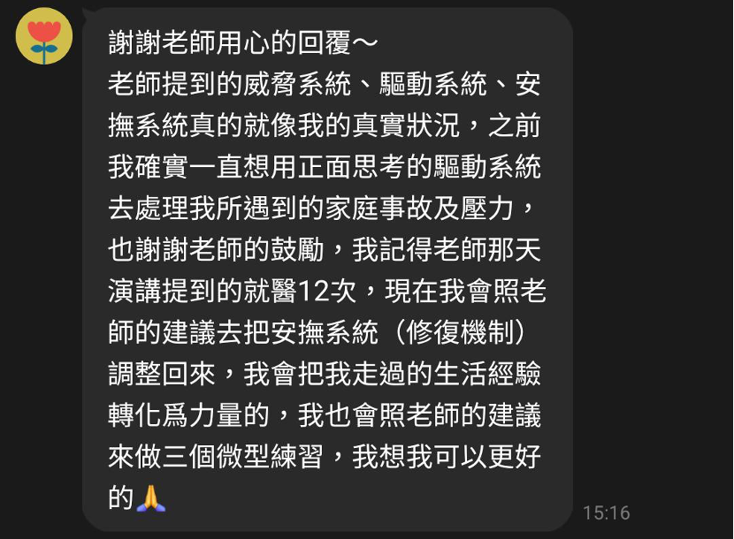 我引用情緒調節系統(The Three Emotion Regulation Systems)來幫你解題。